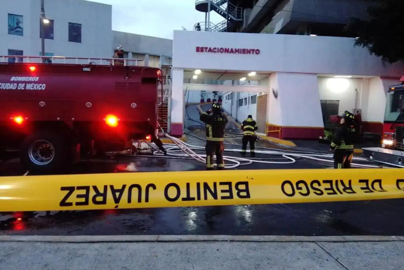 Bomberos controlaron el incendio que se registró hoy, 13 de junio de 2022, en el edificio de la Secretaría de Obras y Servicios de la Ciudad de México (CDMX) ubicado en la avenida Universidad y Eje 7 Sur, colonia Santa Cruz Atoyac.