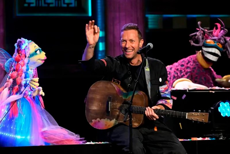 Chris Martin de Coldplay se unió al grupo de títeres The Weirdos para una actuación en The Tonight Show Starring Jimmy Fallon ayer.
