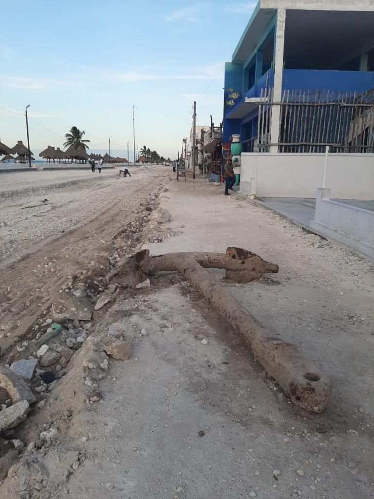 Ancla de aproximadamente tres metros de largo y más de una tonelada de peso, fue hallada sobre el malecón de Puerto Progreso.