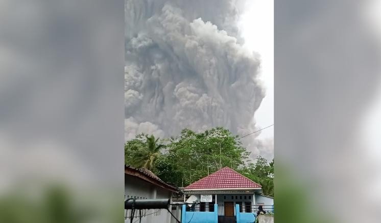 El puesto de observación del volcán Mount Semeru en el distrito de Candipuro informa sobre un aumento de la actividad volcánica y nubes de cenizas calientes que caen hacia la aldea de Sapitarang, en el distrito de Pronojiwo, Java Oriental.