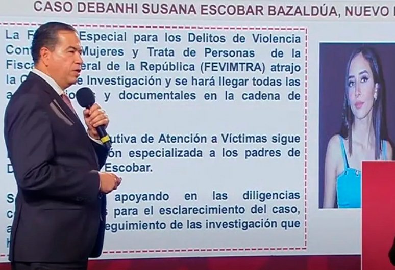 El subsecretario de Seguridad, Ricardo Mejía Berdeja, informó durante La Mañanera que el caso de Debanhi Escobar será investigado por la Fiscalía Especial para los Delitos de Violencia Contra las Mujeres y Trata de Personas (FEVIMTRA), luego de que la Fiscalía General de la República atrajera la investigación.