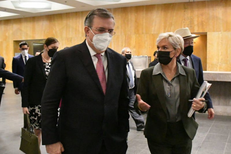 Granholm se reunió con el canciller Marcelo Ebrard y con el embajador de Estados Unidos en México, Ken Salazar, al inicio de su viaje en el país, donde también se reunirá esta tarde con AMLO.