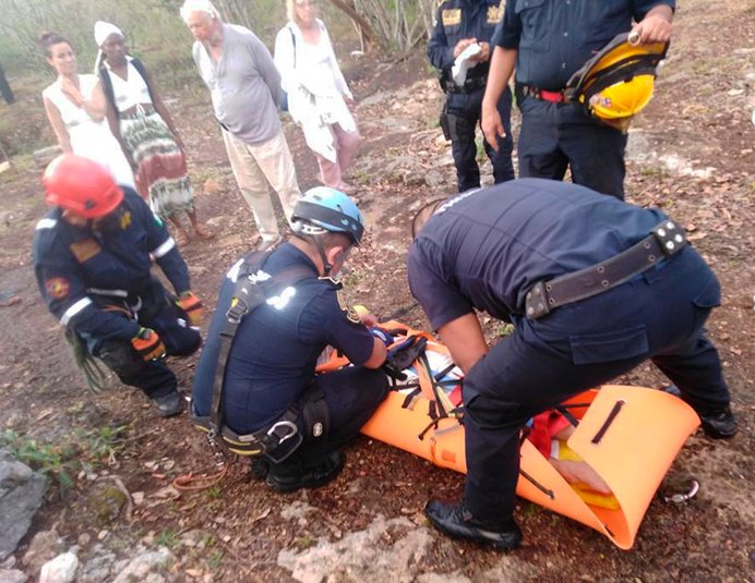 Al recibir la llamada de auxilio, los bomberos, paramédicos y policías estatales llegaron al lugar por un camino de terracería, realizaron el rescate y trasladaron a la lesionada en una ambulancia de la SSP a un hospital en Mérida.
